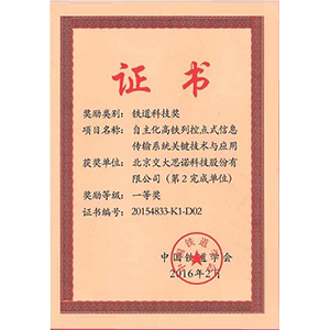 中國鐵道學(xué)會(huì)科學(xué)技術(shù)獎(jiǎng)一等獎(jiǎng)